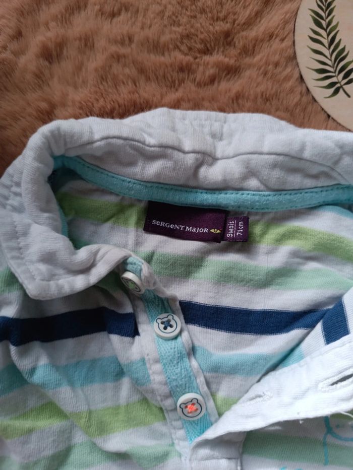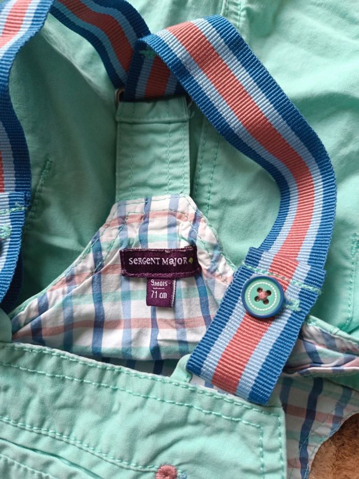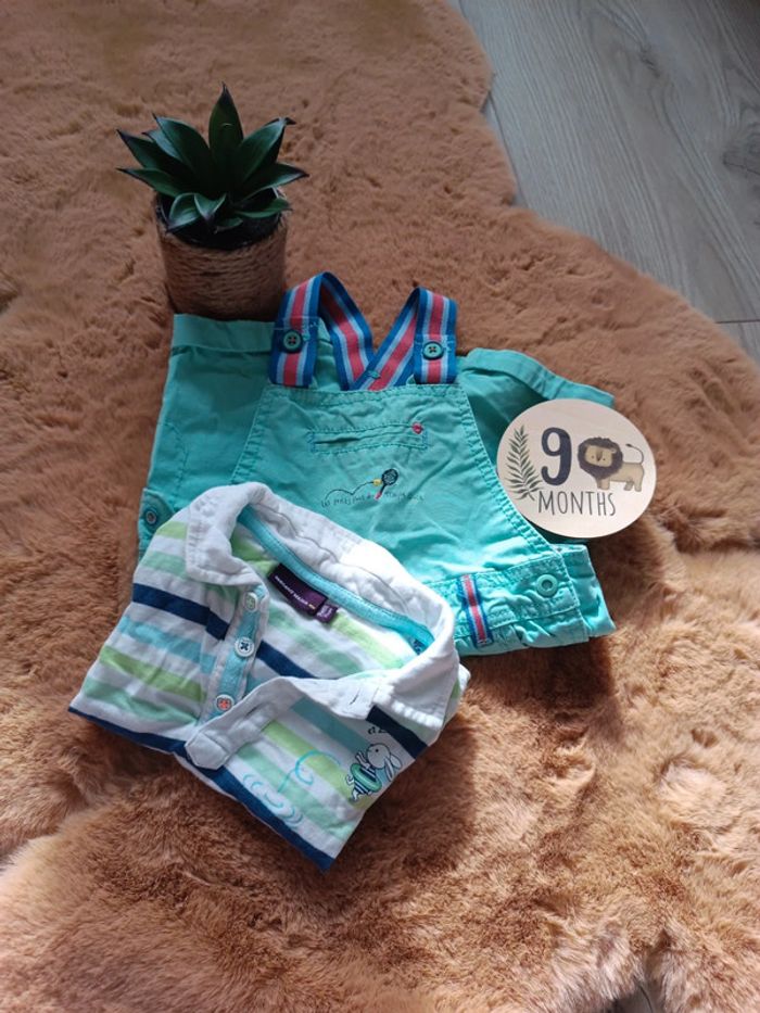 Lot Salopette+Polo sur les tons d'un jolie turquoise, un polo rayé avec quelques motifs, Salopette avec pressions à l'entre-jambes, bretelles réglables avec 2 boutons. De la marque Sergent Major, Taille 9 Mois, en très bon état. 📦 Envois rapide et soignée. 📢 Remise activée jusqu'à 15%, et payé qu'un seul frais d'envois ! #tetell29_bbgarcontaille9mois