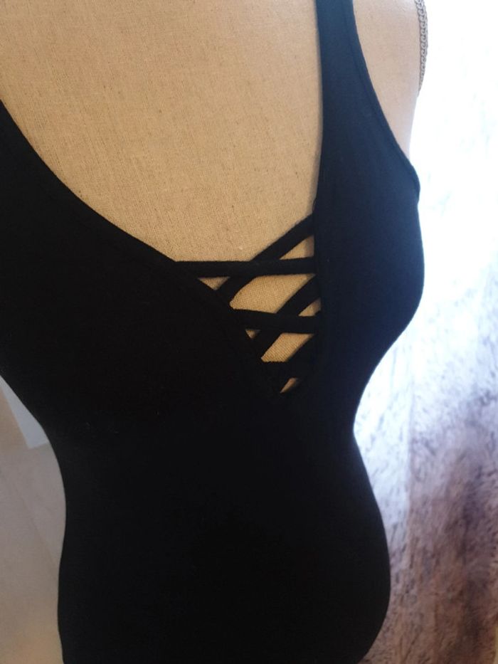 Body noir Détail "lacet" devant cousue Taille cintré XS Entre jambes avec pression #tetell29_tailleXS #tetell29_taille34