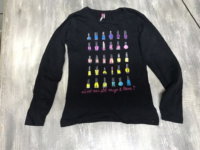 T-Shirt noir à longues manches. Taille 10 ans -140.