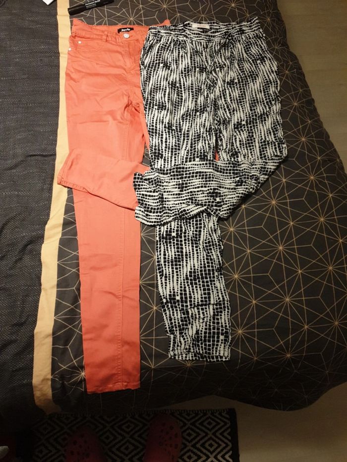 Lot de 2 pantalons Un sarouel léger noir et blanc élastiquer sur les cotés de la taille avec cordon (camaïeu) Jean corail effet peau de pêche Tous les 2 en taille 36. Très bon état 👍🏼 (Lot n°3) 📦 Envois rapide et soignée. 📢 Remise activée jusqu'à 15%, et payé qu'un seul frais d'envois ! #Frais #Ete #Couleur #Camaieu #Jennyfer #Lot #Pantalon #Bas #Corail #BlackAndWhite #tetell29_tailleS #tetell29_taille36