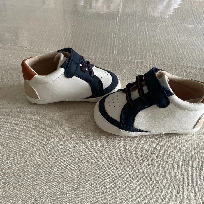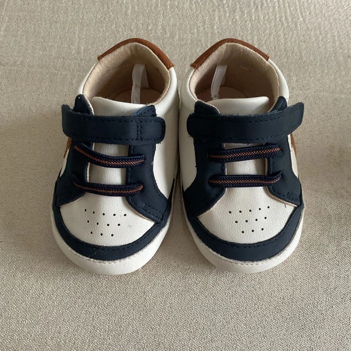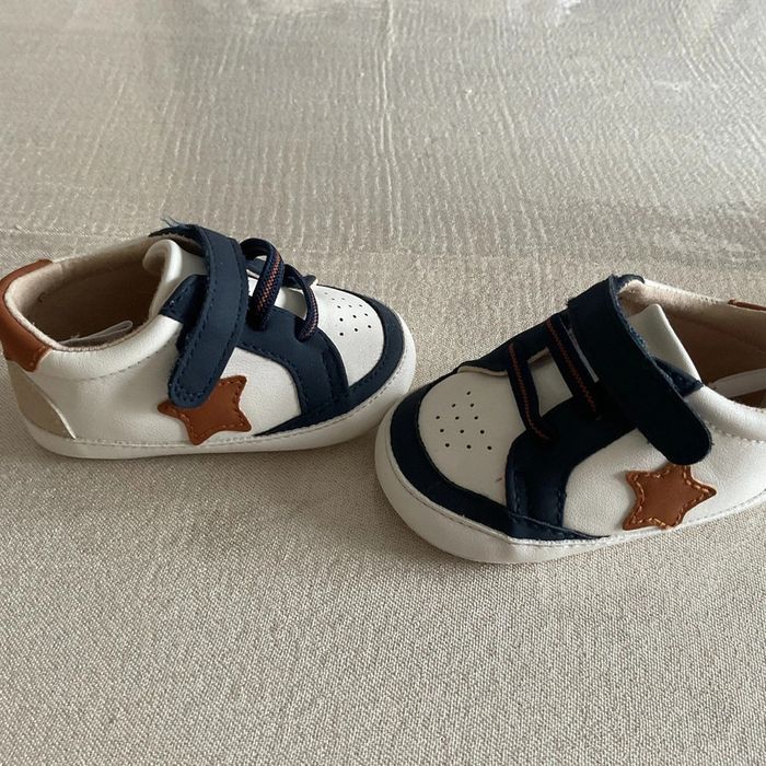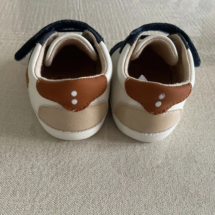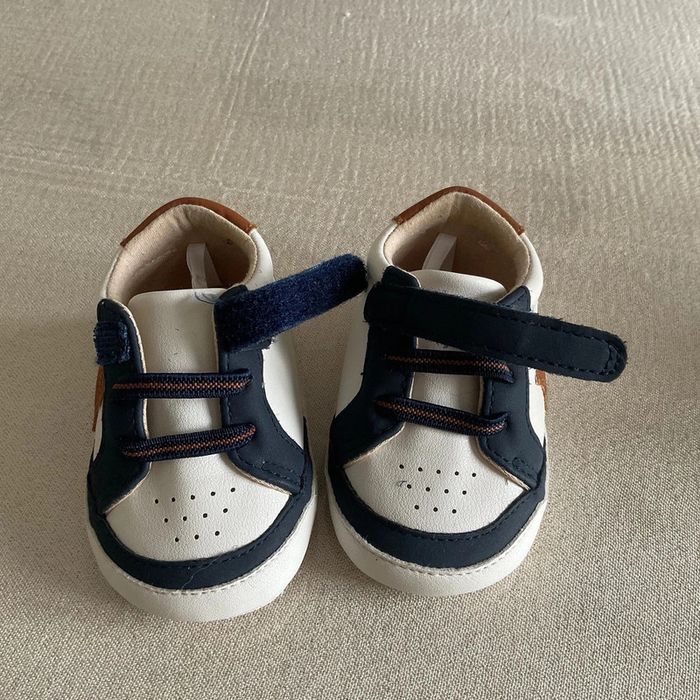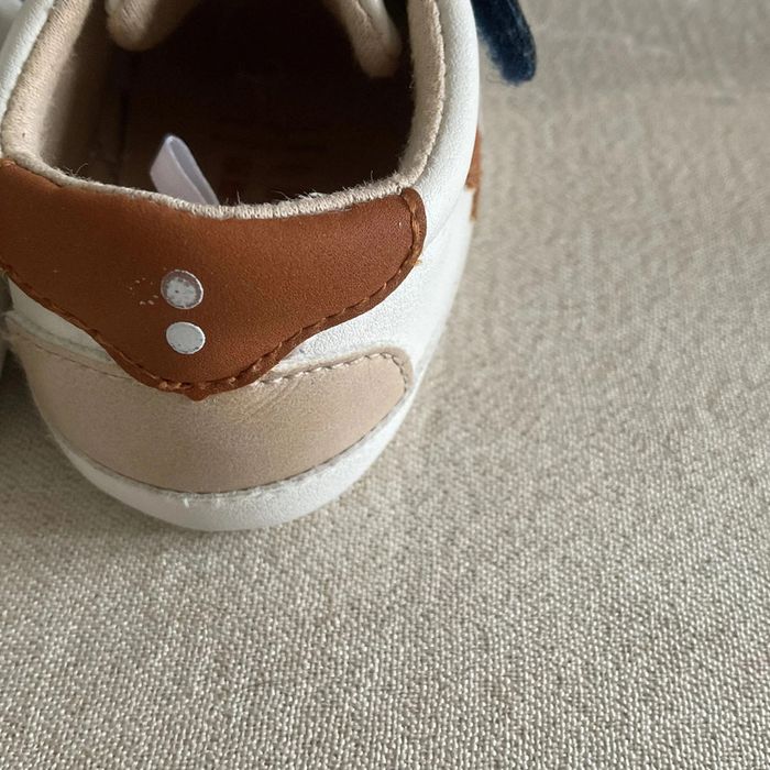 🌟 Parfaits pour les premiers pas de votre bout de chou ! Les chaussons sont principalement blancs avec des motifs bleu marine et marron. Une étoile marron est présente sur le côté de chaque chaussure. Ils possèdent des fermetures velcro pratiques pour un ajustement facile. Les semelles sont souples, idéales pour le confort des petits pieds. 🌟 Les semelles ont des traces d'utilisation et un petit rond à l'arrière est un peu effacé - 📏 Taille : 6/12 mois - 🏷️ Marque : Obaïbi - 🌿 Matières : doublure: 100% coton, semelle intérieure: 100% coton, semelle extérieure: 100% coton, tige: 100% polyuréthane 👟 Ces chaussons seront parfaits pour le quotidien de votre bébé. Enfilez-les pour une balade au parc ou une journée à la maison. Le style moderne s'accordera à merveille avec une adorable tenue d'été. #dne9004_chaussures #dine9004_obaibi #dine9004_blanc #chaussonbébé #premierspas #enfantmode #babyshoes #comfortbaby #tendancemini #styleenfant #kidsfashion #babywear #modenfant #adorablelooks #blueandbrown #velopractical #petitestar #babystyle