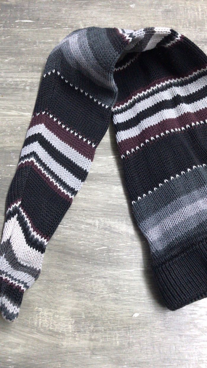 Long bonnet. Ton noir, gris blanc, brun.