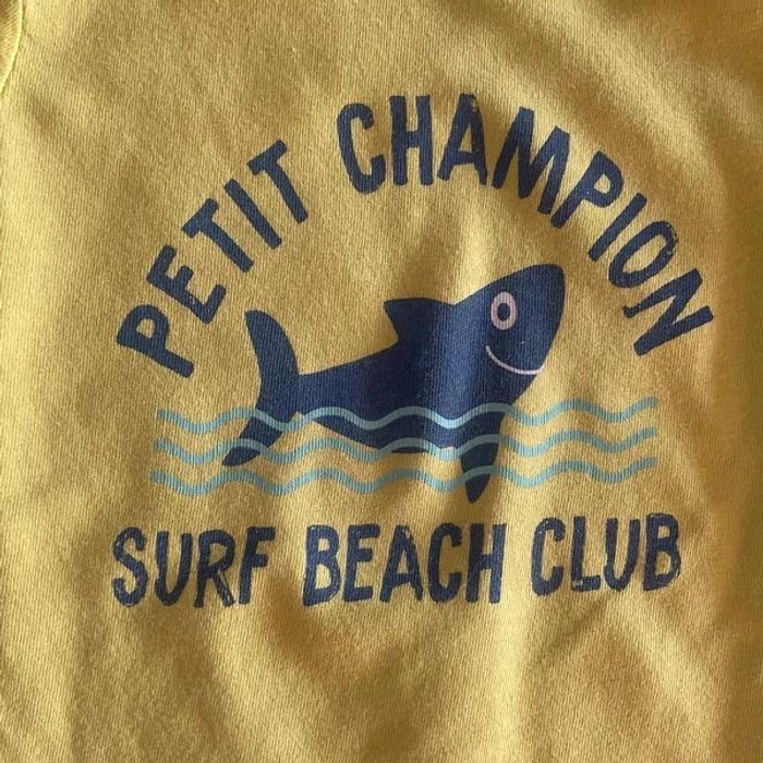 🌟 Pour les petits champions du surf ! Ce t-shirt jaune vif arbore un imprimé amusant avec un requin sur le thème du "Surf Beach Club". Il est conçu pour les enfants de 12 mois. L'inscription "Petit Champion" ajoute une touche ludique au look général. Le col est rond et les manches sont courtes, pratiques pour les journées chaudes. 🐠 - 📏 Taille : 12 mois - 🏷️ Marque : Pat & Ripaton - 🌿 Matières : 100% coton - 🎨 Couleur : Jaune Idéal pour une journée à la plage, ce t-shirt se mariera parfaitement avec un short en jean pour un look estival. 👖 En balade, associez-le à un petit chapeau pour protéger votre enfant du soleil. 🧢 Pour une tenue décontractée à la maison, combinez-le avec un pantalon en coton doux. 👶 #dine9004_enfnats_garcon12mois #dine9004_patetriptaon #tshirt #enfant #patetripaton #jaune #petitchampion #surf #club #bebemode #stylebebe #vetementenfant #modeenfant #summeroutfit #plage #requin #graphique #confort
