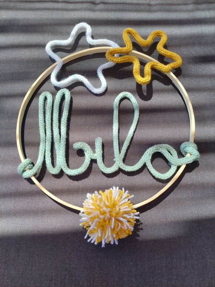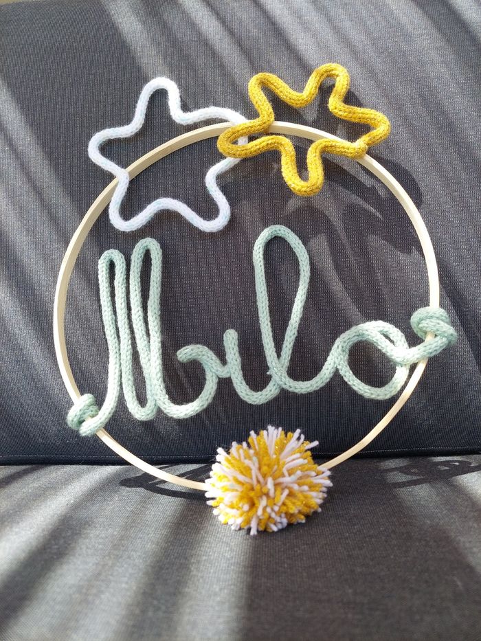 Décoration prénom en tricotin dans anneau en bambou. Couleurs au choix #décorationAurelilou34