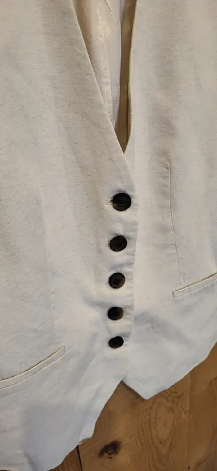 Gilet tailleur sans manches Zara femme XS blanc lin - photo numéro 6