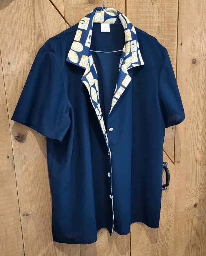 Chemise femme vintage marine col imprimé géométrique – T.52 - Très bon état - photo numéro 1
