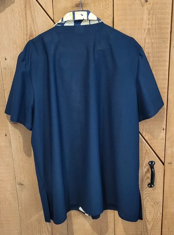 Chemise femme vintage marine col imprimé géométrique – T.52 - Très bon état - photo numéro 5