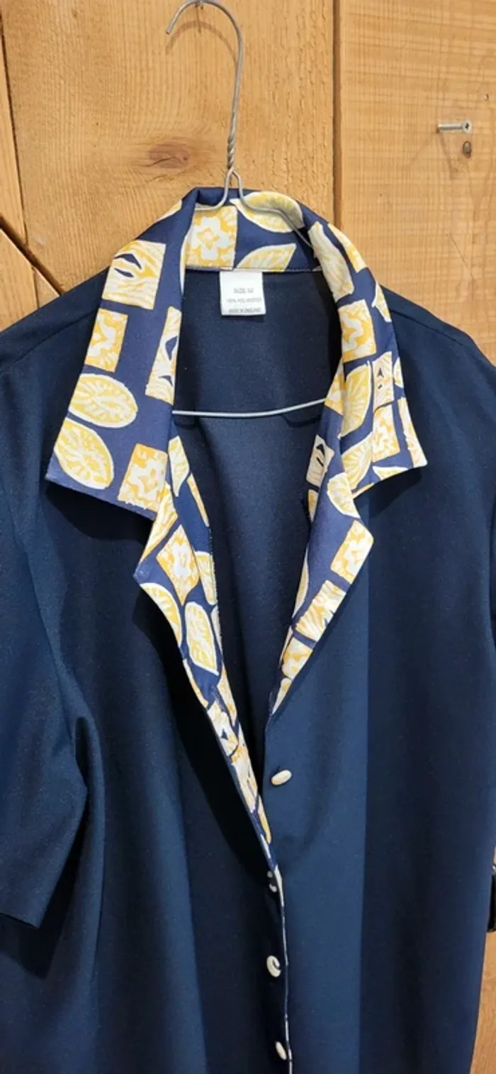 Chemise femme vintage marine col imprimé géométrique – T.52 - Très bon état - photo numéro 4
