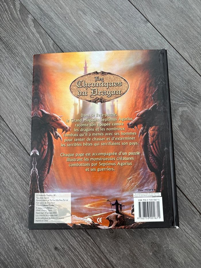 Jolie livre puzzle avec 6 puzzles de dragons de 63 pièces. Très bon état mise à part les coins un peu abîmés - visible sur les photos. Pour voir les autres livres et jouets : #ds91220_jouets #ds91220_livres #dragons #livredepuzzles #puzzles #puzzle #puzzle63pieces
