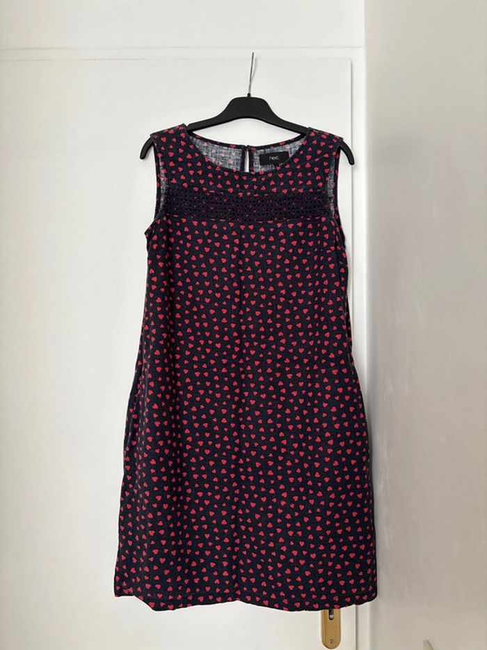 Robe Next en bon état Taille 12 (40) L Motifs coeurs Matière 65%lin 45%viscose Avec 2 poches Pour voir les autres articles femme: #ds91220_femme #robe #femme #femme40 #robefemmetaille40 #next #nextfemme #robelin #robenext