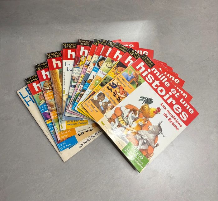 12 numéros de Mille et une histoires - Les musiciens de Brême - Blanche Neige - Tom Pouce - Les trois petits cochons - Petit Pierre et la sorcière - Poucette - Le prince et les fées - Le chat botté - Le Petit Poucet - Le plus rusé des lapins - La cigale et la fourmi - Les peurs de petit Jean Pour voir les autres livres : #ds91220_livres #histoires #histoiresdenfants #milleetunehistoires