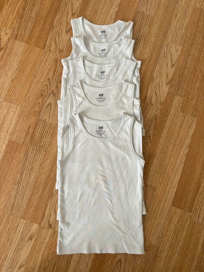 Lot de 5 débardeurs H&M. Le blanc est un peu passé mais restent en bon état, taille 122-128. Pour voir mes autres articles dans des tailles similaires, cliquez ici : #ds91220_7ans #ds91220_8ans #cotonorganic #débardeurs #débardeur #coton #hm #débardeurgarçon #débardeurHM #débardeurenfant #souspull #tshirt #tshirtsansmanches