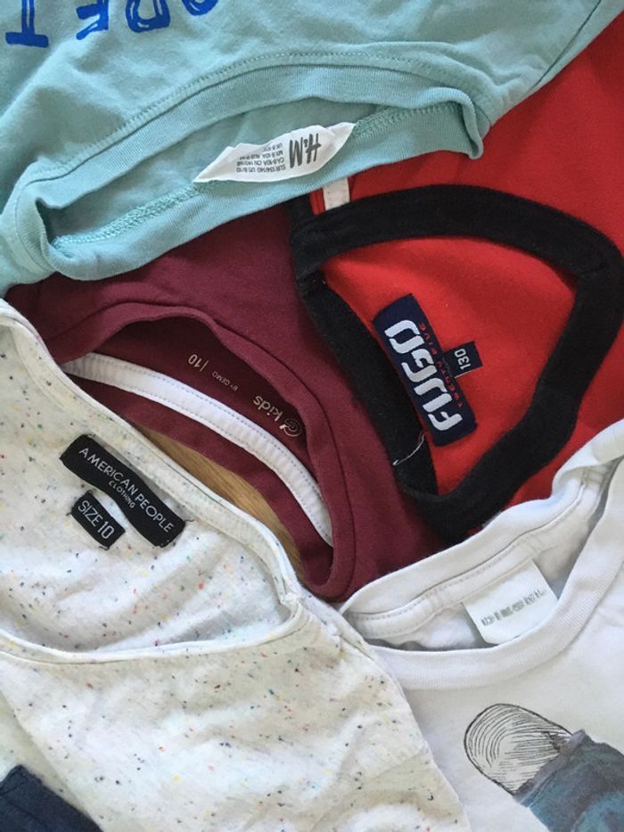 Lot de 5 t-shirts en bon état, taille 10 ans, marques différents. Marque de feutre bleu sur le t-shirt diesel blanc, visible sur la photo mais rien de méchant. Pour voir mes autres articles dans des tailles similaires, cliquez ici : #ds91220_9ans #ds91220_10ans #garçon10ans #lot #tshirtsgarçon #hm #handm #lot #tshirt #garçon #HM #boy #teeshirts #americanpeople #fugo #gemo #summer #tshirts #dinosaure #diesel