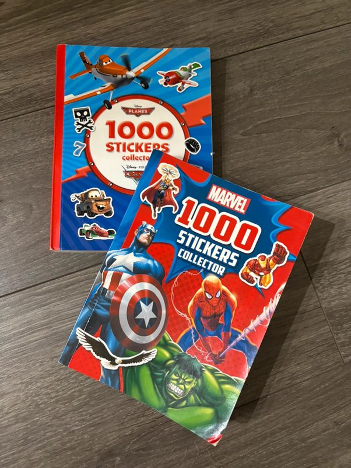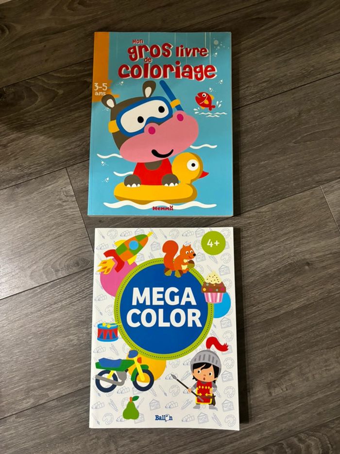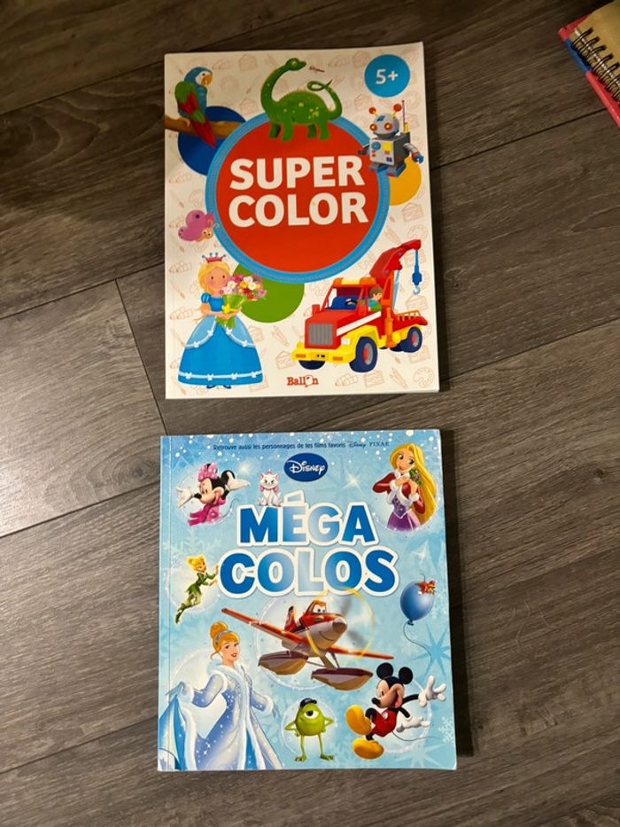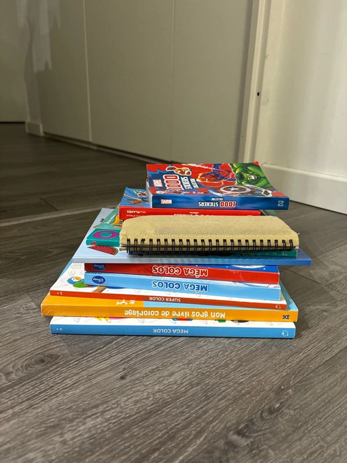Lot de 9 livres de coloriage et 2 livres d’autocollants. Seulement quelques pages sont coloriées. Parfait pour les enfants de 3-7 ans. Les autocollants c’est pareil il y en a qui ont été pris mais ils y a en a beaucoup qui restent !!!