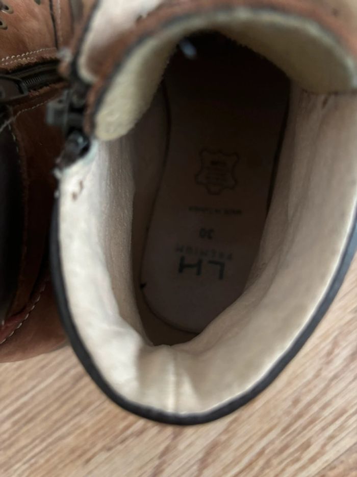 Chaussures montantes en cuir de la marque LH Premium, en bon état, pointure 30. Pour voir mes autres articles dans des tailles similaires, cliquez ici : #ds91220_pointure30 #chaussuresautomne #chaussuresmontantes #pointure30 #chaussurescuir #LHpremium #lahalleauxchaussures #lahalle #cuir #LH #chaussures #bottines #automne