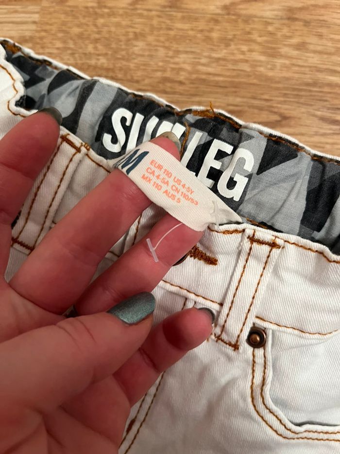 Jeans slim blanc en parfait état, taille ajustable. Marque H&M, taille 110. Pour voir mes autres articles dans des tailles similaires, cliquez ici : #ds91220_5ans #jeans110 #jeanslim #jeansblanc #hm #hmenfant #slimleg #hm #fille