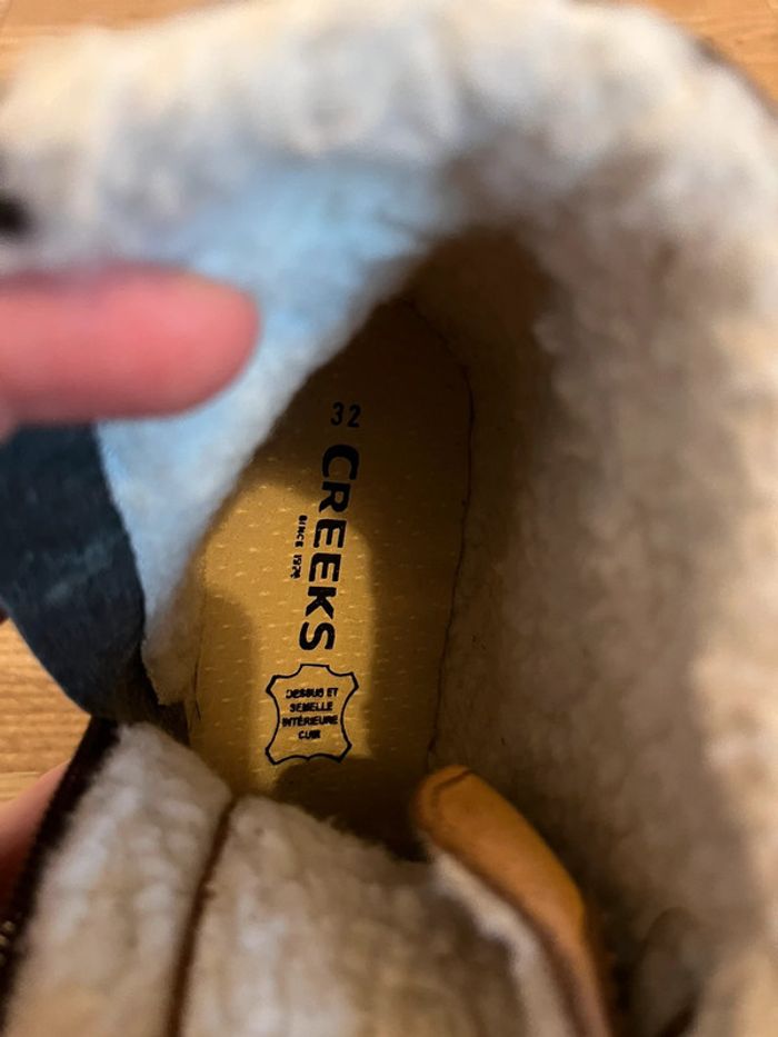 Bottines NEUFS de la marque CREEKS, pointure 32. Raison de la vente : acheté en avance et l'enfant a grandi des pieds plus que prévue. Pour voir mes autres articles dans des tailles similaires, cliquez ici : #ds91220_pointure32 #bottines #bottines32 #neuf #neuve #pointure32 #creeks #bottinesgarçon #bottinesdoublés #chaussuresdhiver #chaussuredoublés #chaussures #bottinedhivers