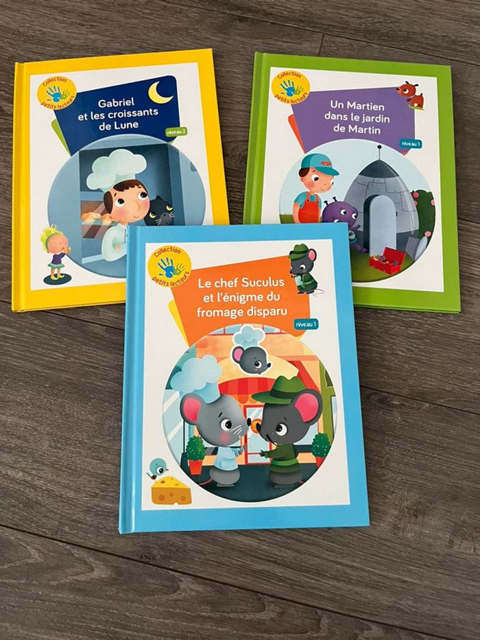 Lot de 3 livres à lire tout seul. Couverture rigide. Très bon état ! Les questionnaires à la fin des livres sont remplis. Les titres : - Un Martien dans le jardin de Martin (niveau lecture 1). - Le chef Suculus et l’énigme du fromage disparu (niveau lecture 1). - Gabriel et les croissants de Lune (niveau lecture 2). Pour voir mes autres livres, cliquez ici : #ds91220_livres #mespremiereslectures #lecture #lectureniveau1 #lectureniveau2 #livrealireseul #livreàliretoutseuil #lot #lotlivresalireseuil #petitslecteurs #editioncaramel #CP #lecturecp