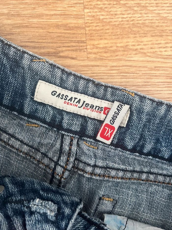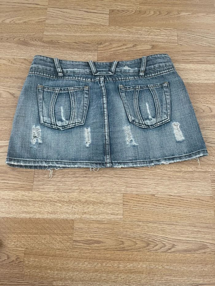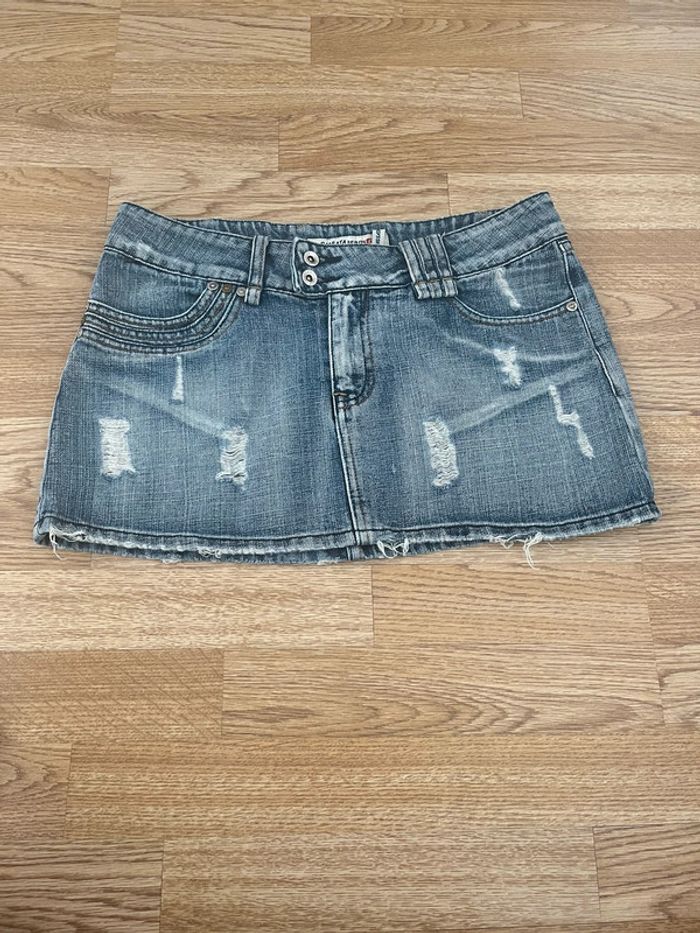 Jupe en jeans avec les éléments de tissus déchiré. Taille XL en très bon état. Pour voir mes autres articles dans des tailles similaires, cliquez ici : #ds91220_femme #jupe #jupeenjean #jupeenjeans #minijupe #jupe42 #femme #gassatajeans #gassata #femme42