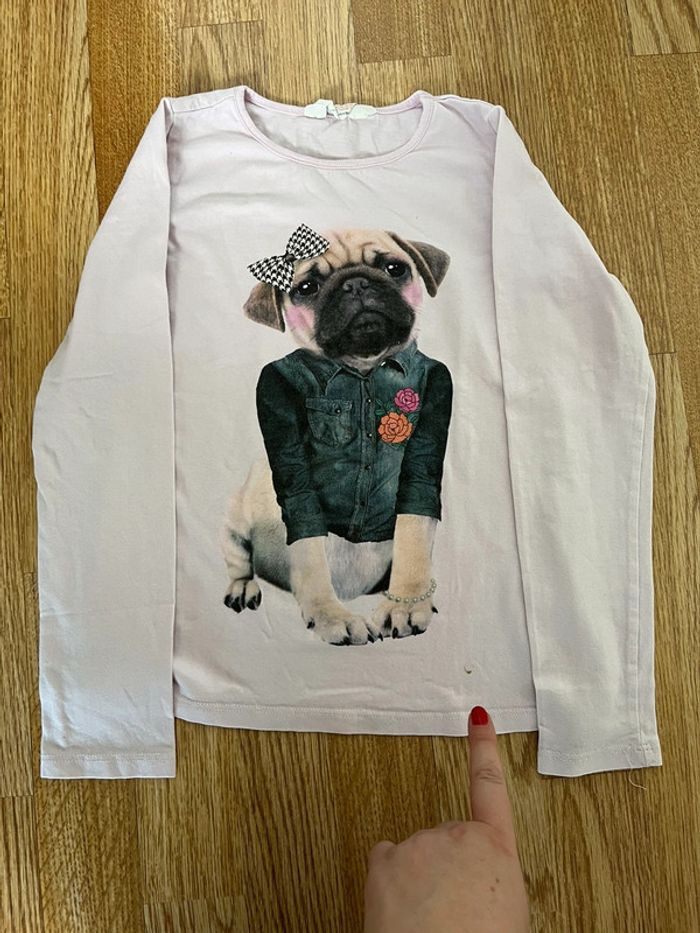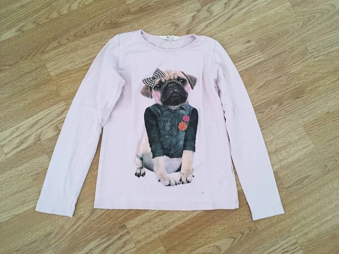 Lot de 4 t-shirts manches longues, taille 128. Une petite tache de feutre sur le t-shirt rose avec le chien et l'imprimé un peu craquelé sur le marron, (regardez sur les photos tout est visible) sinon bon état. Pour voir mes autres articles dans des tailles similaires, cliquez ici : #ds91220_8ans #tshirtmancheslongues #tshirt128 #tshirtfille128 #tshirtancheslongues128 #HM #hmkids #hmenfant #H&M #HMfille #tshirtmancheslongues #hm #tshirtfillemancheslongues #tshirtml128 #tshirtfille128 #lindex #basicbylindexgirl #lindexgirl #basics