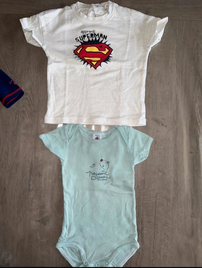 Vêtements bébé 9 mois: -short rayé hugo boss:9€ VENDU -tshirt +short Simba :5,50€ -polo mickey :3€ -polo guess: 4,5€ -bodies petit bateau :2,50€ -Tshirt superman :2,50€ -combinaison aquatique :1€ Tout est en en très bon état. La combinaison présente un défaut derrière a la fermeture (voir photo). Ou le lot 18€ ‼️N’achetez pas directement sans me dire ce qui vous intéresse ‼️ #orchestra #petitbateau #primark #guess #hugoboss #firefly #kiabi #bébé #garconété #tshirtbebe