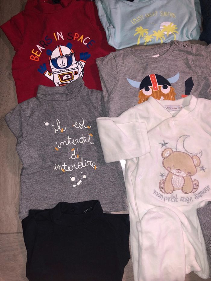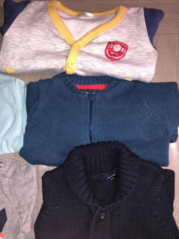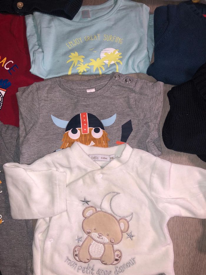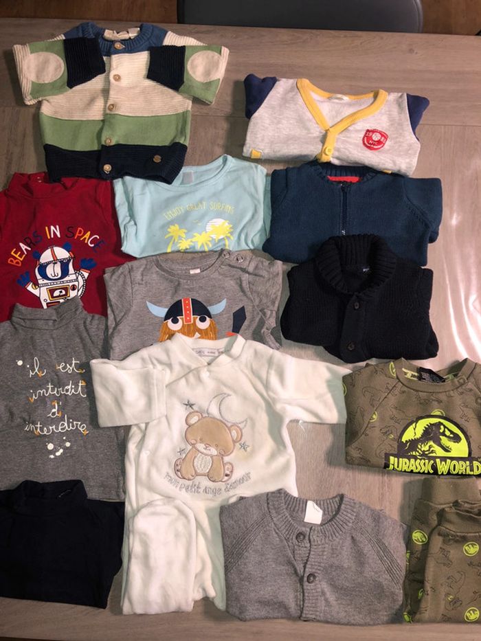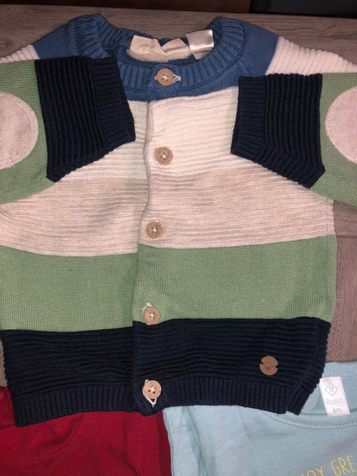 Lot de vêtements hivers 6 mois. Tout est en très bon état voir neuf. •3sous pull •2tshirt manches longues •1 pyjama •5 gilets hivers Je rajoute GRATUITEMENT jogging Jurassic car lui est abîmé . Alors je le met dans le lot car ça dépanne bien quand on laisse bébé ramper au sol ou dans le jardin 🙂 vaut mieux salir un vetements abîmé qu’en abîmer un autre. #pyjama #souspull #gilet #gemo #hm #kiabi #bébé #texbaby #tshirtmancheslongues