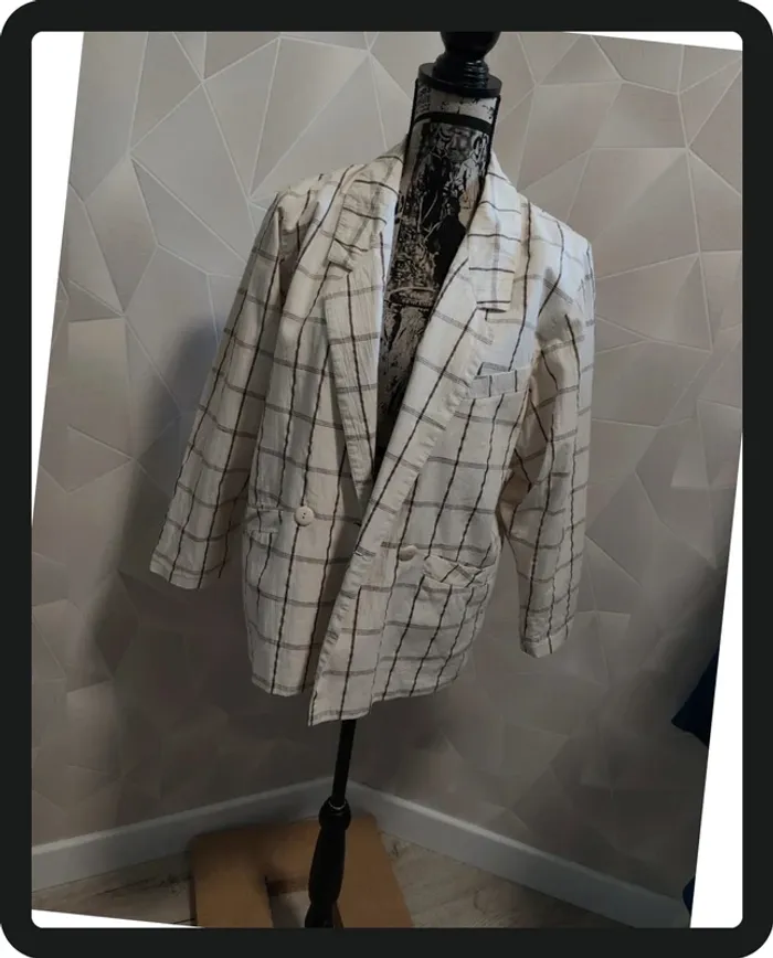 Veste tailleur blanche a rayures légère petite tache minuscule se voit a peine