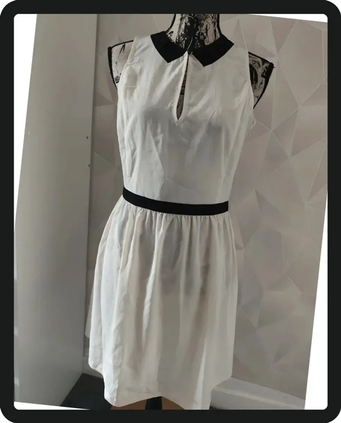 Robe crème et noir fermeture éclair sur le côté matière transparente