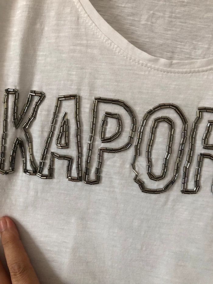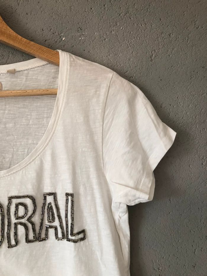 Teeshirt blanc, inscription en étoles métalliques A noté un défaut sur la lettre O #isacrgfemme38 #isacrghaut #isacrgete