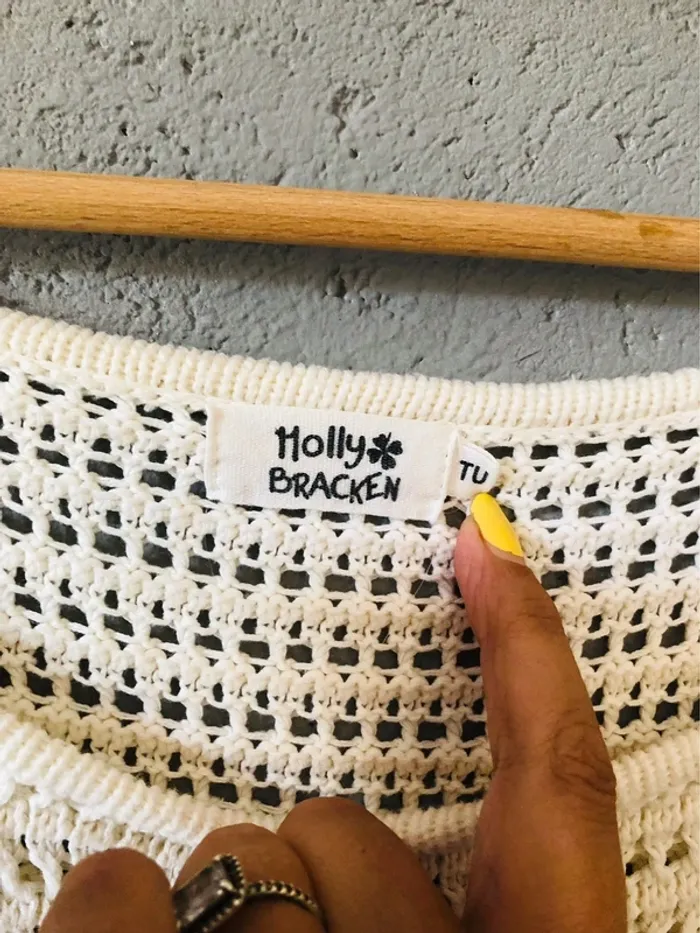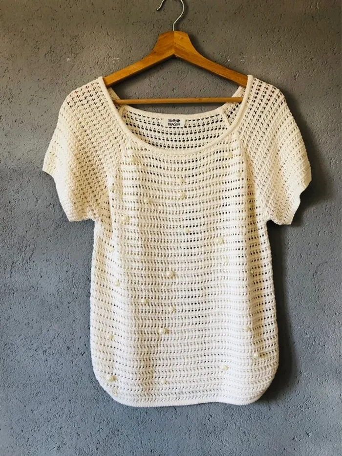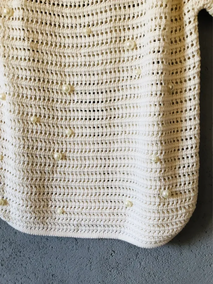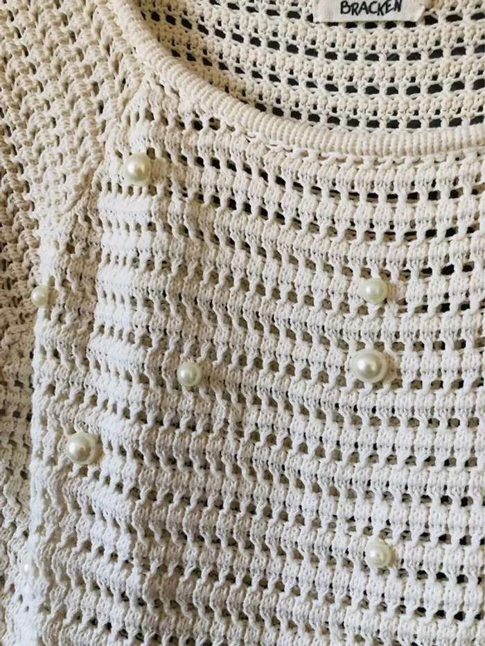 Haut en maille ajourée crème et perles nacrées Aucun défaut Étiqueté TU mais correspond à un M #isacrgfemme38 #isacrghaut