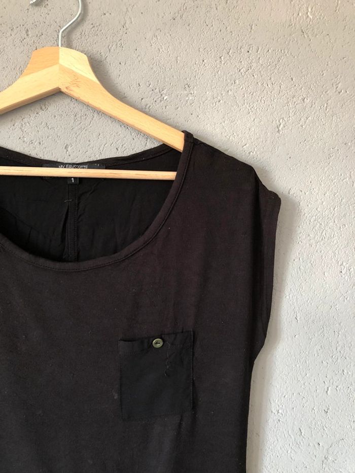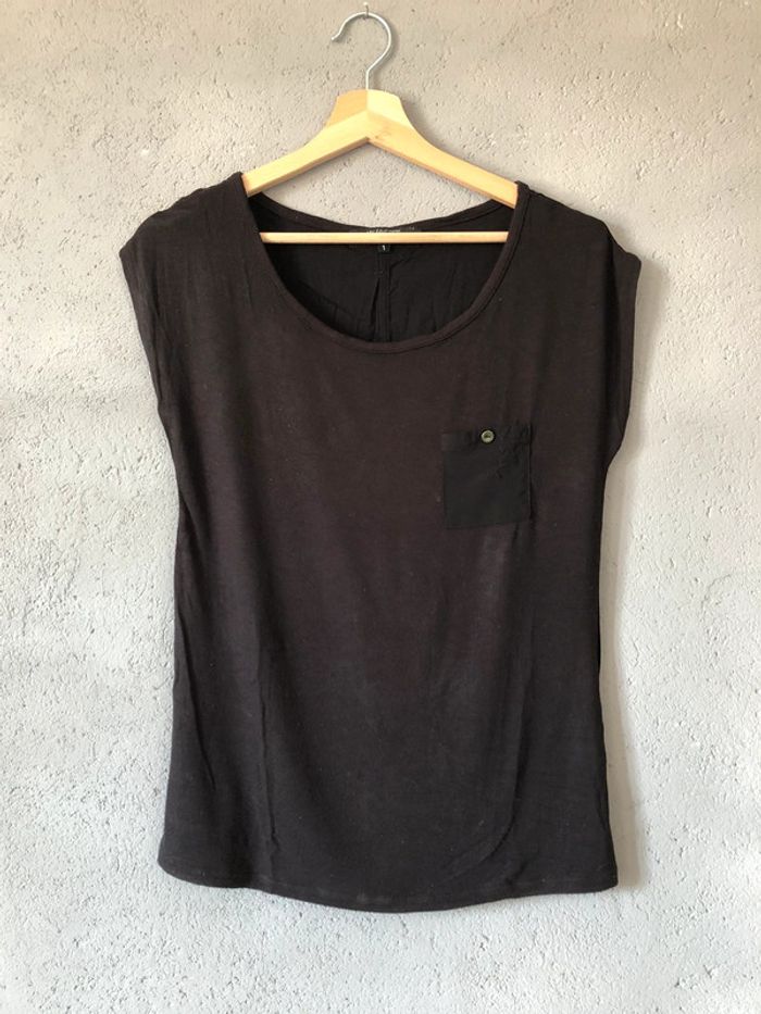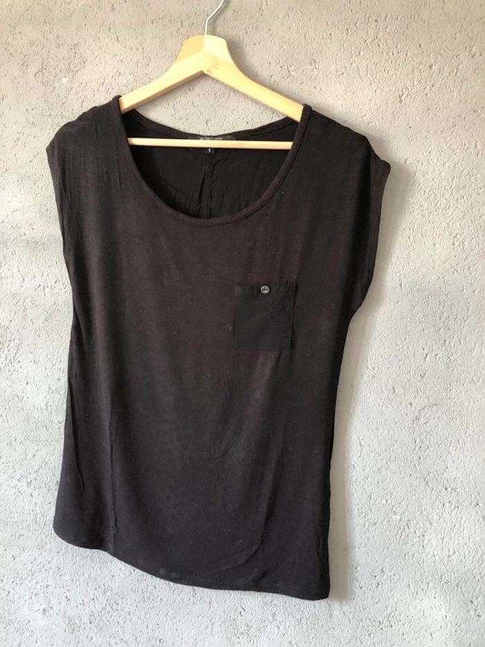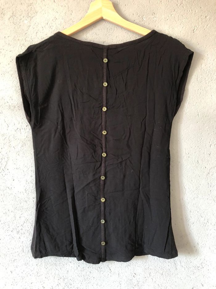 Teeshirt noir, boutons décoratifs au dos Bien porté mais mérite une seconde vie #isacrgfemme38 #isacrghaut #isacrgete
