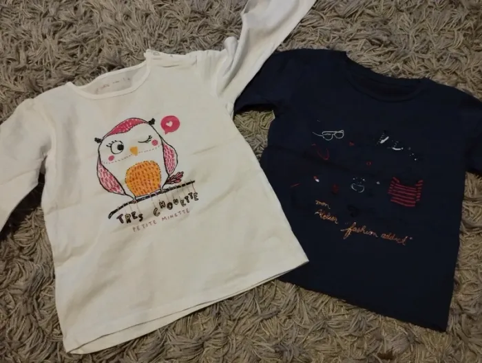 2 hauts longues manches Blanc Gémo Bleu marine influx