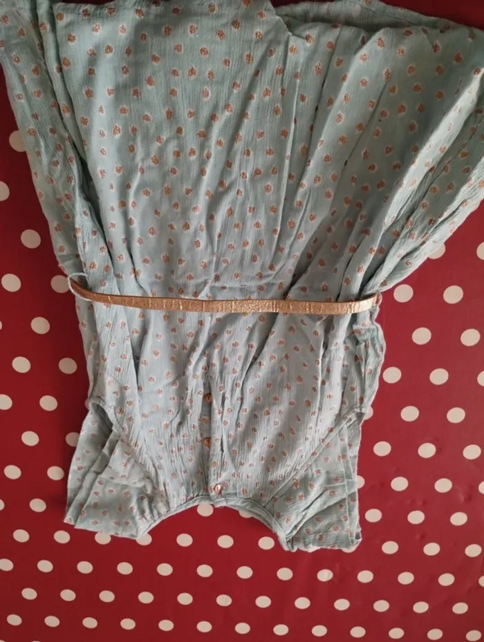 Robe en 4 ans avec ceinture dorée. Doublure bleu claire