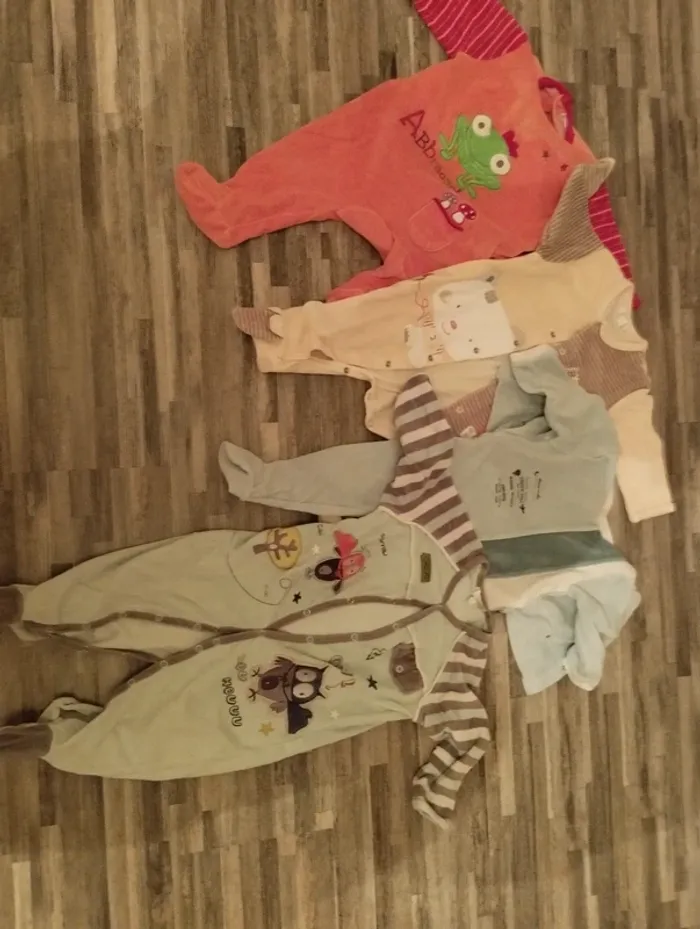 2 pyjamas 9 mois à gauche 0 pyjama 12 mois au centre bleu VENDU 1 pyjama 18 mois à droite Ou 1€ pièce