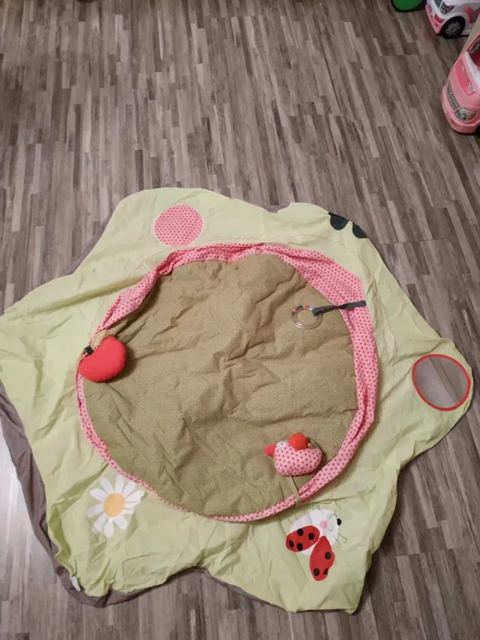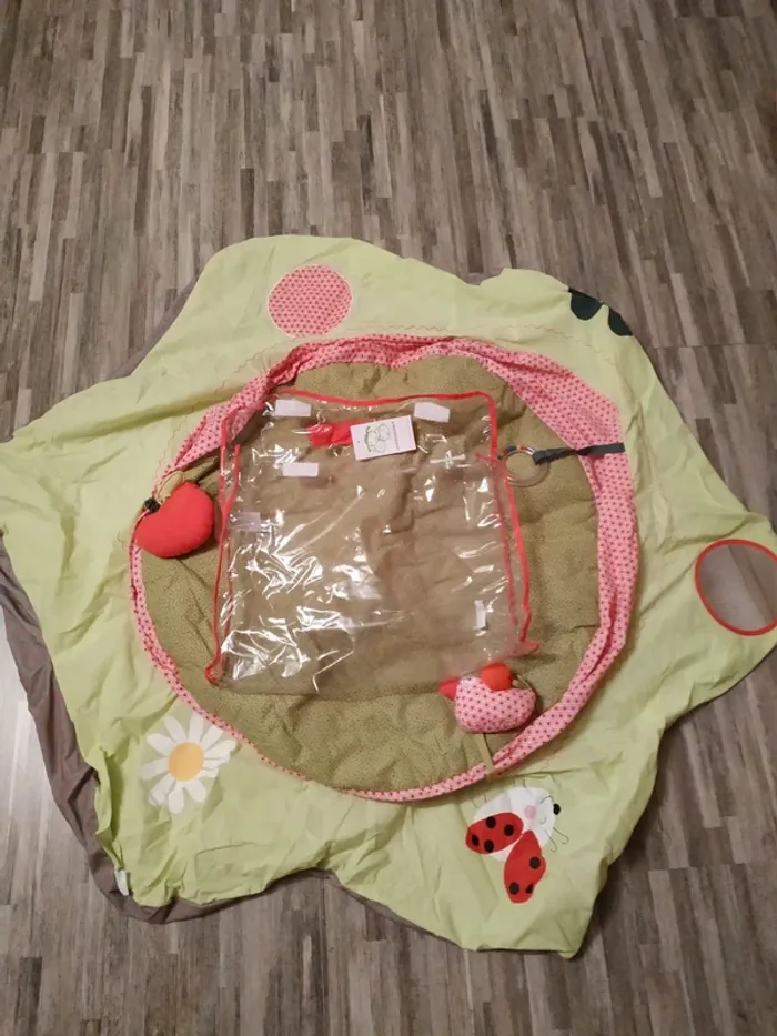 Tapis jamais utilisé. Pochette de transport avec étiquette Vertbaudet dessus, se ferme avec scratch. Diamètre 1m05 1m15 selon le pétale. Retrouvez tous nos produits sur georges08000 et faites un lot pour payer moins de frais.