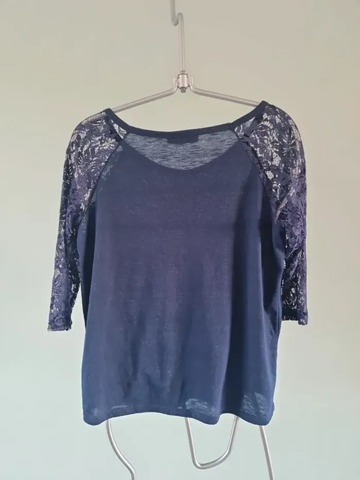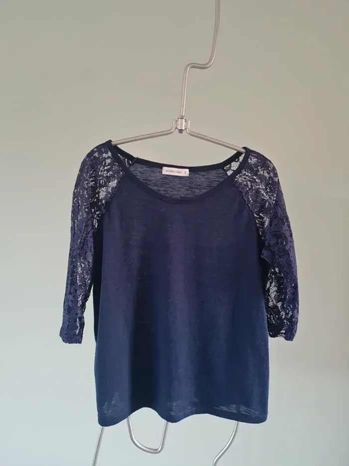 Tee short marque women only Taille 3 Bleu marine Manche en dentelle Bouloches