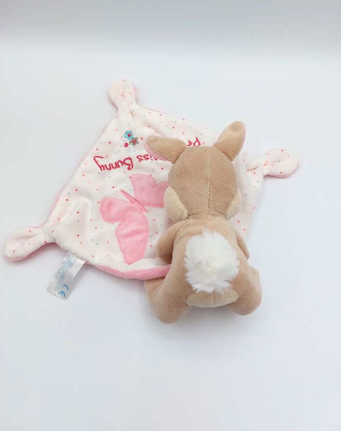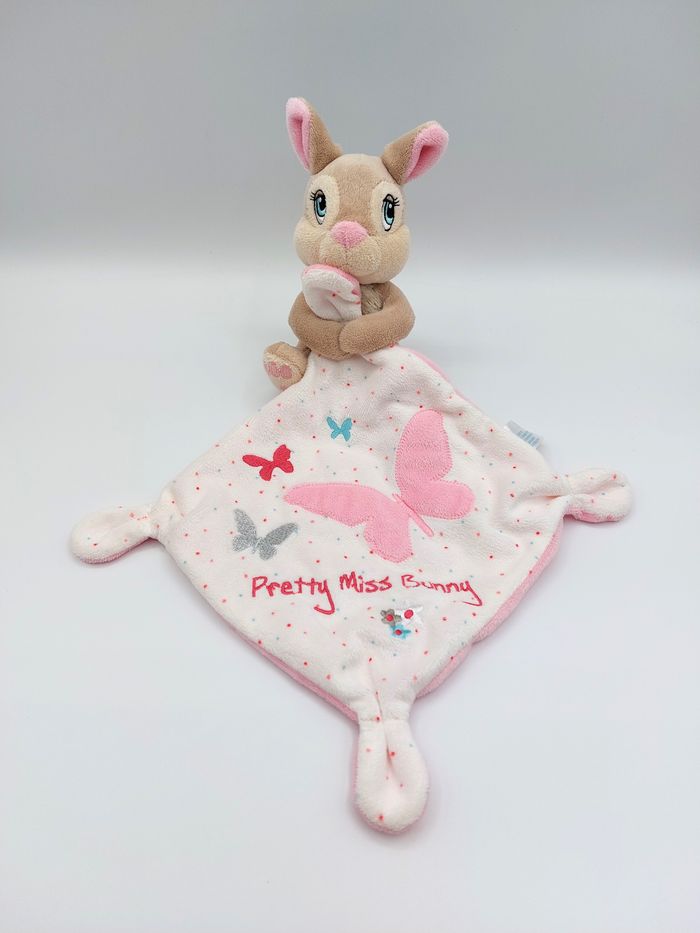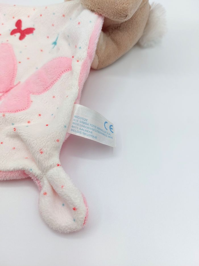 Doudou peluche lapin beige marron rose blanc NICOTOY Simba Toys Pretty Miss Bunny, papillons sur le mouchoir Très bon état Envoi rapide Réf A12452 #peluche #doudou #plush #knuffel #comforter #nicotoy #simbatoys #lapin
