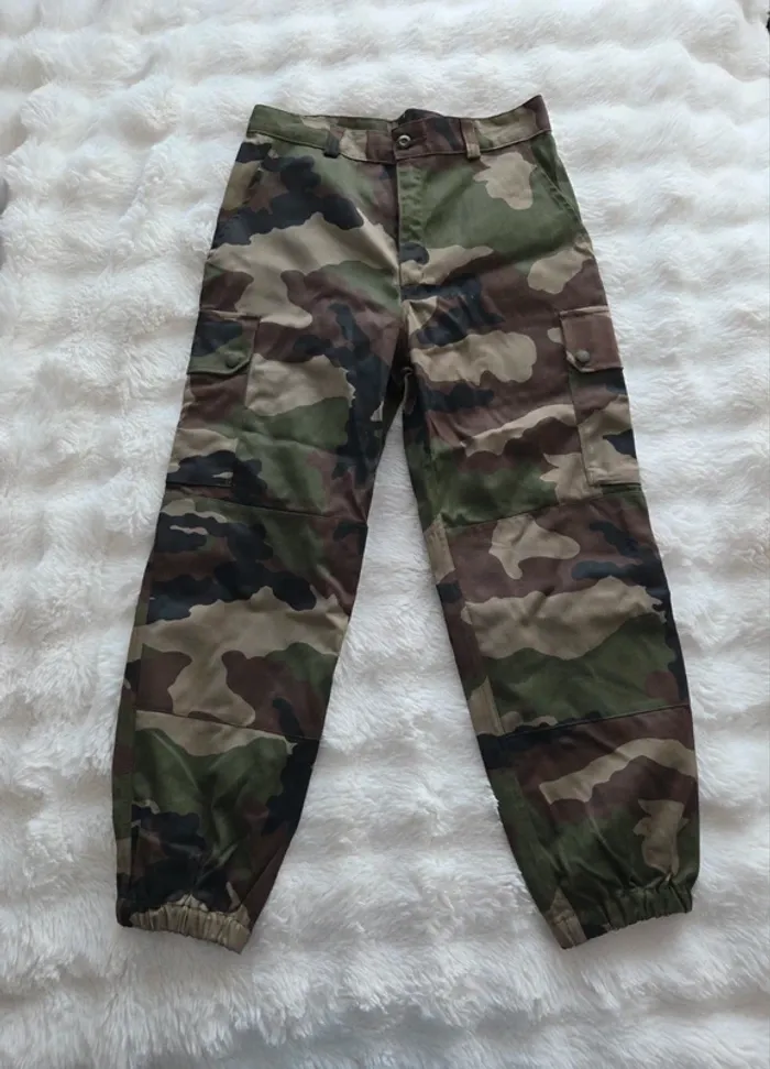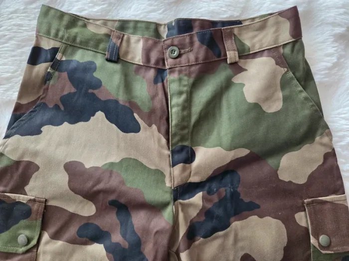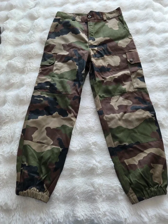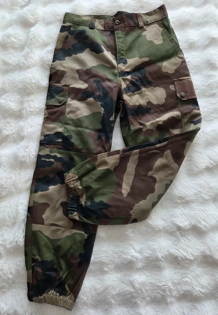 Treillis homme femme neuf Mesure sur photo , inscrite à l'intérieur du pantalon Taille 38 cm , longueur 96 cm