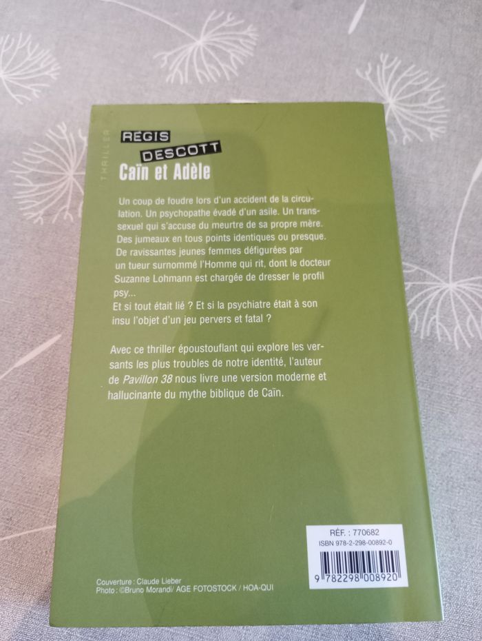 Livre "Caïn et Adèle" de Régis Descott. Editions France Loisirs. Très bon état mais quelques petites taches sur la tranche.