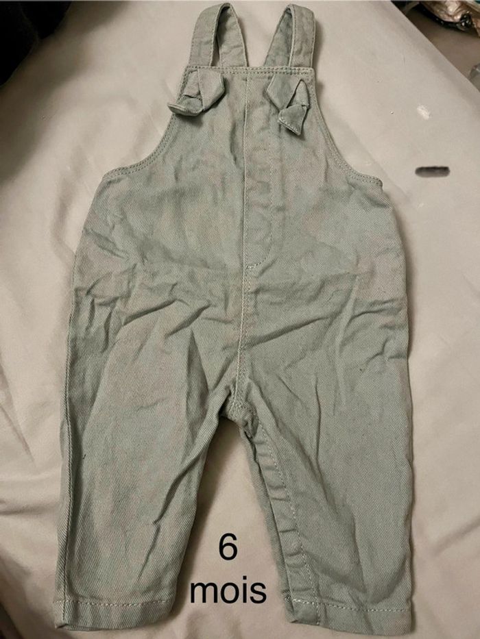 Salopette fille Gris / vert d’eau Portée 1 fois Verbaudet 6 mois