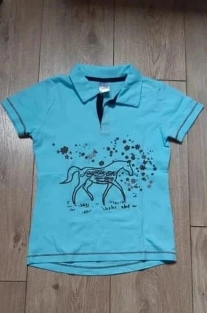 PRIX DE VENTE FERME MERCI Tee-shirt type polo manches courtes d'équitation "fouganza" Motif cheval inscription 1976 horse riding emotion bleu clair 8 ans neuf jamais porté Pour visualiser tous ce que je possède en 8 ans : #ambre626908ans