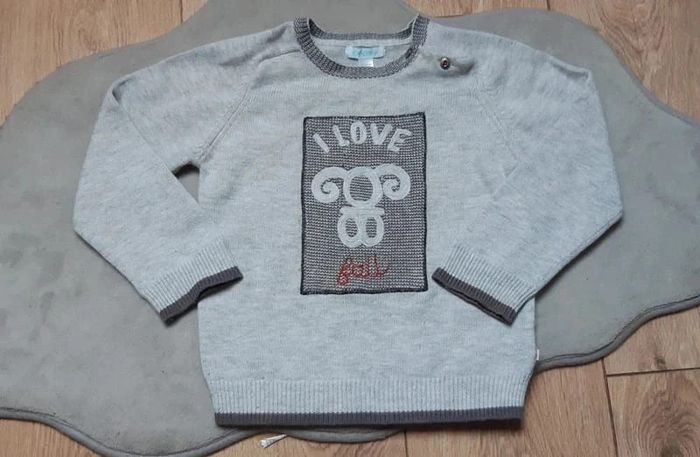 Pull chaud gris obaibi "i love fall" 3 ans en très bon état - photo numéro 2