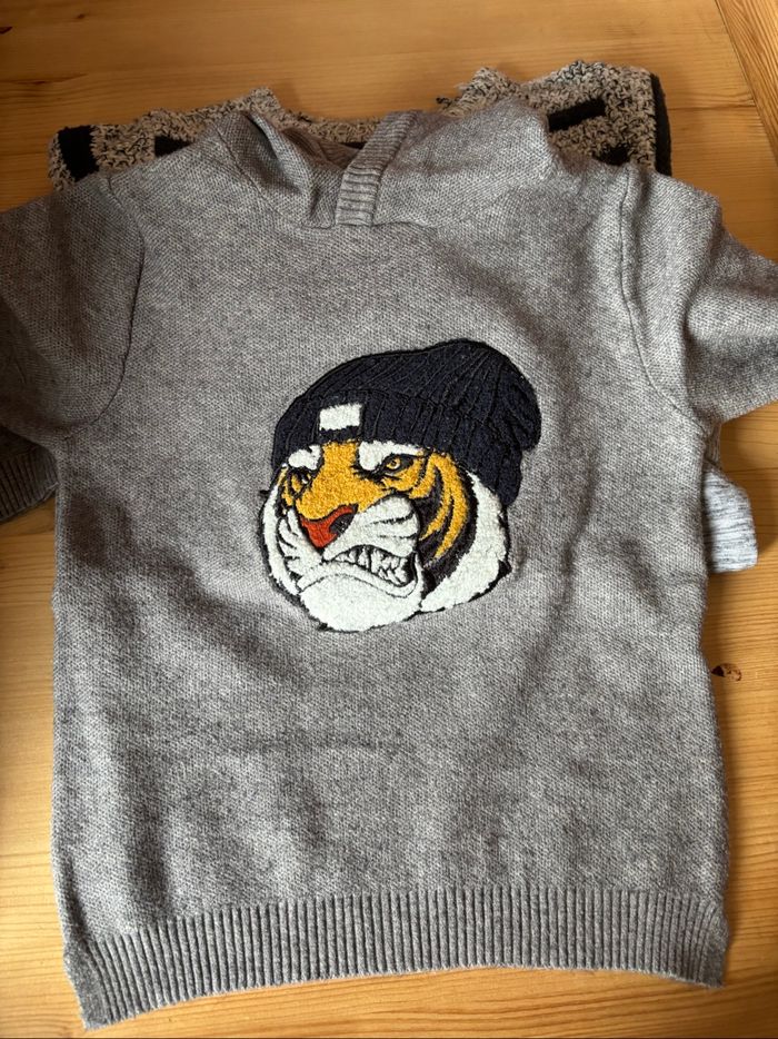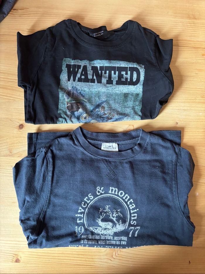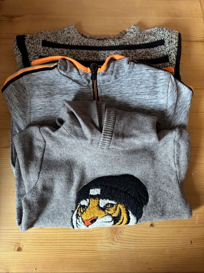 Lot de 9 articles 4 tee-shirts manches longues 2 pulls 1 vestes zippée 2 chemises Divers marques Cyrillus Tape à l’œil, Creeks, okaidi, kiabi , Z,