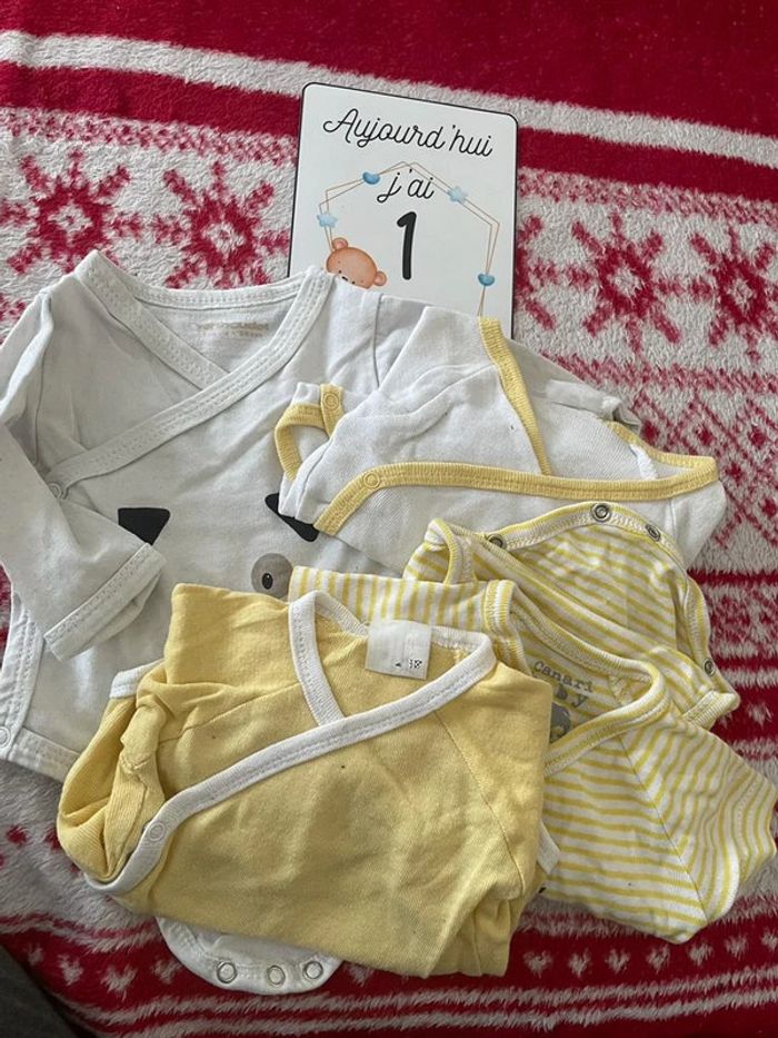 lot de 4 bodies (3 manches longues + 1 manche courte) bon état, pas mal porté. plusieurs marque : canari baby, verbeaudet.. #1moiselodiebdvx