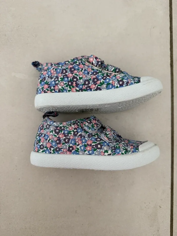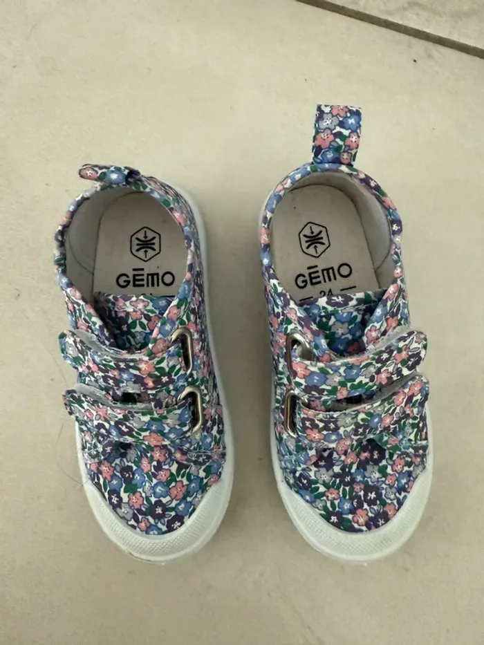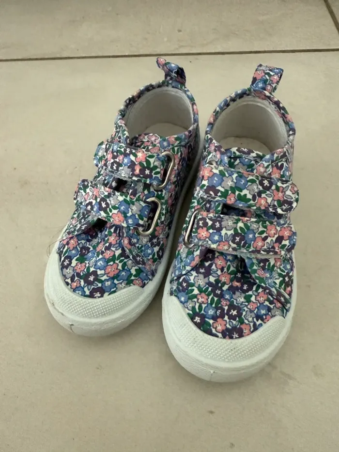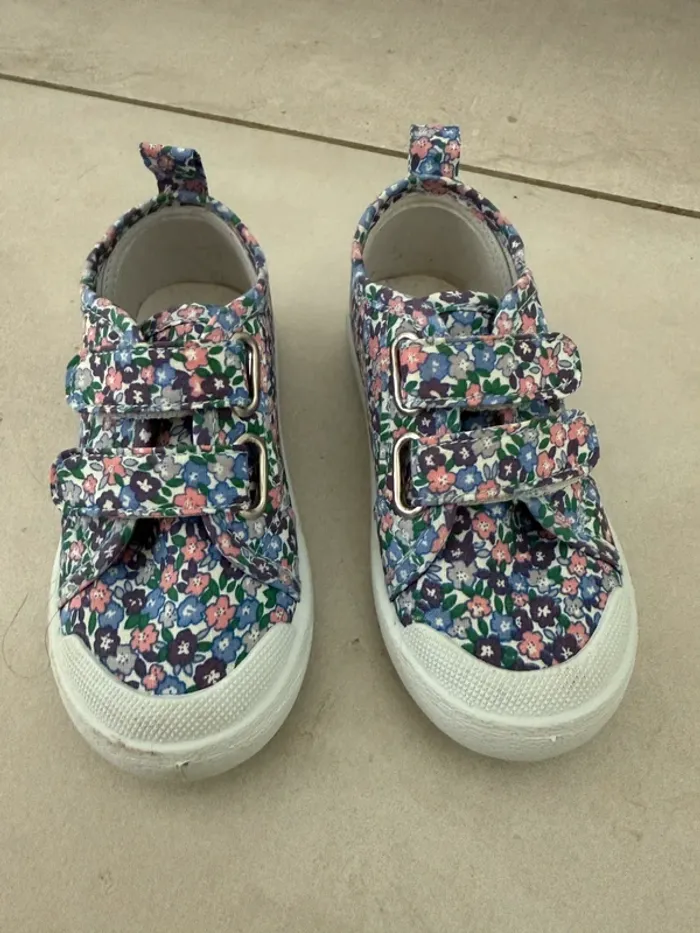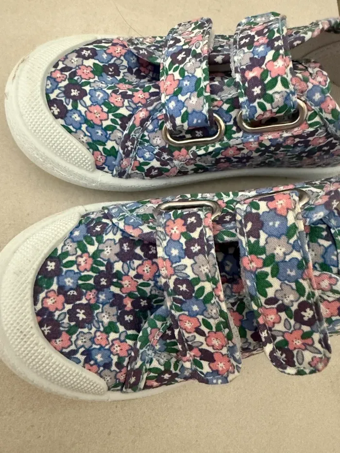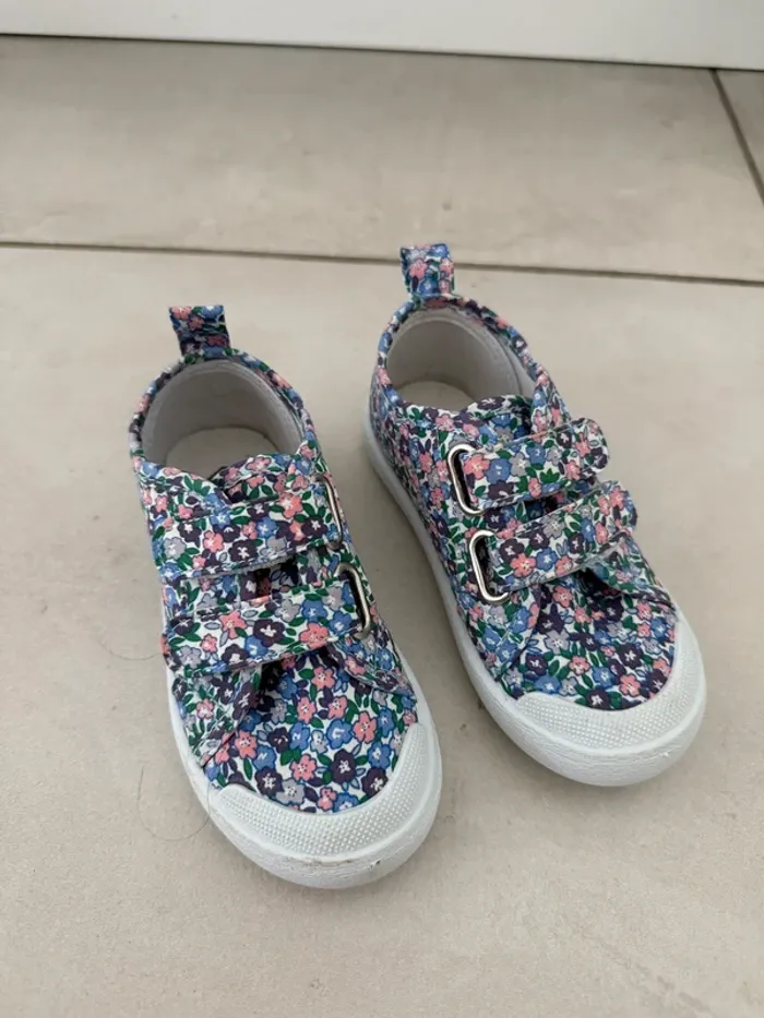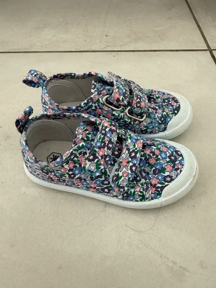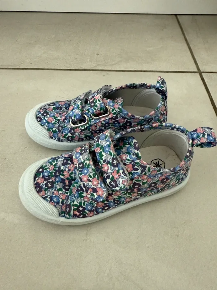 Très bon état, elles ont juste été essayées, jamais portées. Prix d’achat 15€. #baskettoile #basketstoiles #basketsfille #motifsfleuris #motiffleuri #fleuri #gemo #basketsgemo