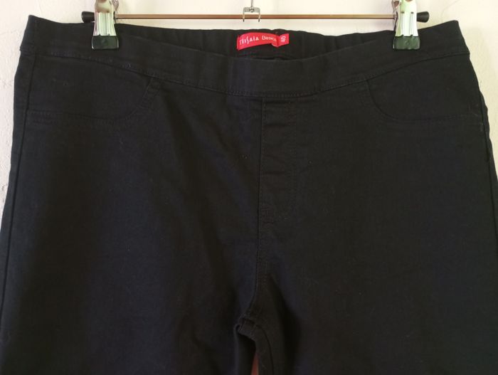Jegging noir, 2 poches à l'arrière. Très bon état général. Largeur à plat à la taille : 41cm, longueur à partir de l'entrejambe : 78cm, longueur totale : 98cm.