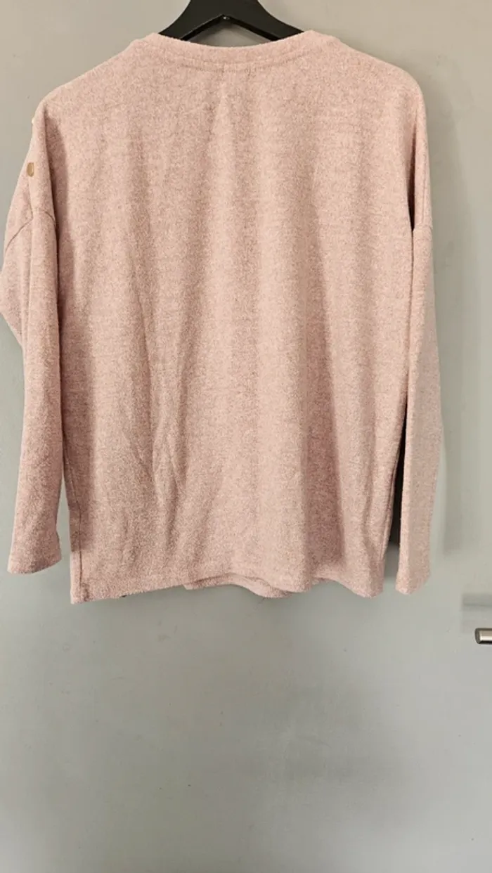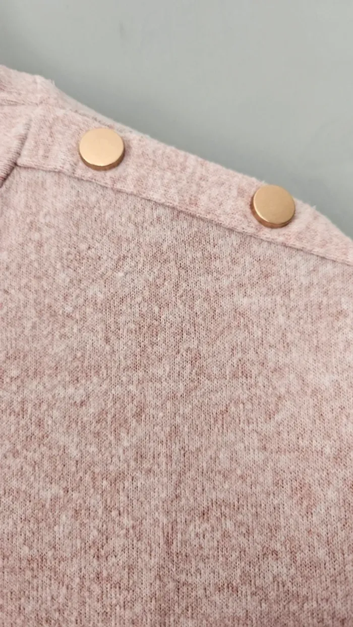 Pull Pimkie rose poudré tout doux - détails boutons dorés épaules - photo numéro 4