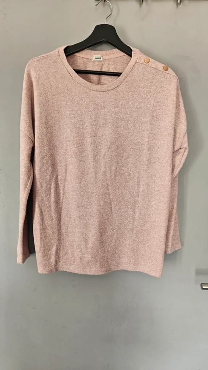 Pull Pimkie rose poudré tout doux - détails boutons dorés épaules - photo numéro 1