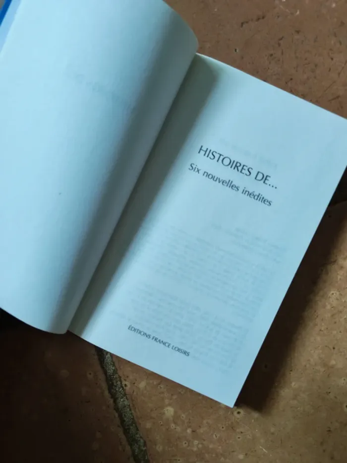 Histoires de ... six nouvelles inédites, Jean Anglade, Laurent Botti, Annie Degroote, Dominique Marny, Danielle Thiéry, Brigitte Varel, éd. France Loisirs, 2002, 200p., 195g. Livre est neuf, au format poche, couverture rigide. #histoiresde #anniedegroote #dominiquemarny