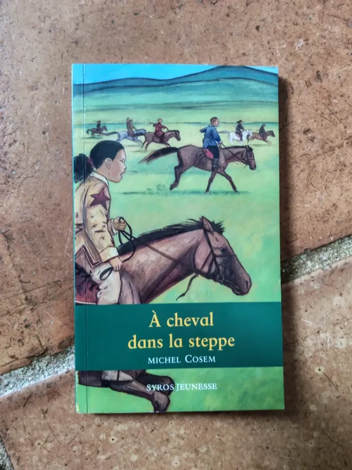 A cheval dans la steppe, Michel Cosem, livre de poche, éd. Syros jeunesse, illustration : Nclas Wintz, pour 11 et +, 2004, 91p., 91g. Livre est en bon état général, comporte des soulignements au stylo, la couverture est marquée par les pliures. #acheval #danslasteppe #michelcosem #syrosjeunesse